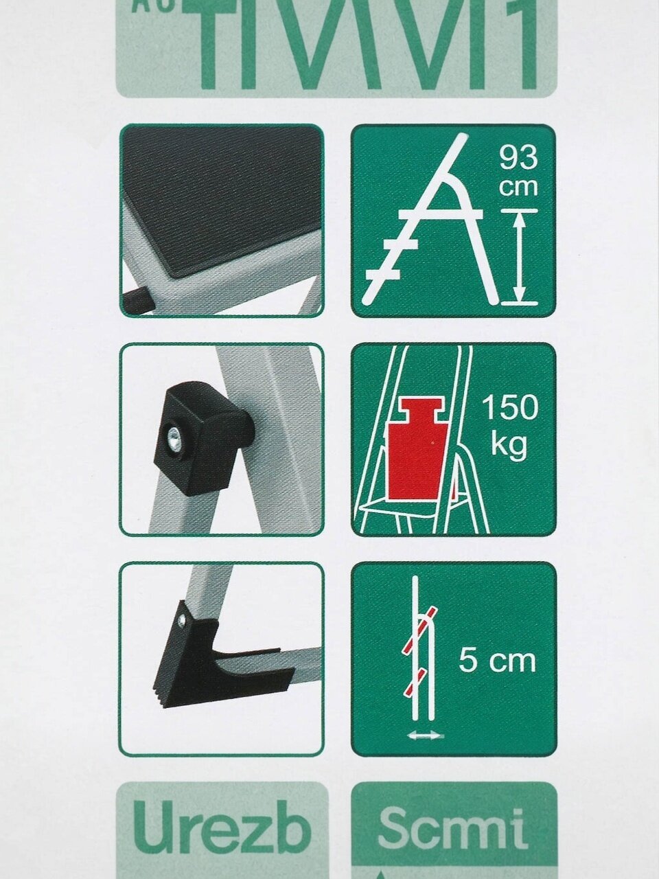 - Высокая нагрузочная способность. Стремянка может выдерживать нагрузку до 150 кг, что обеспечивает высокую степень безопасности при использовании. Вы можете спокойно стоять на ней и выполнять различные работы на высоте.