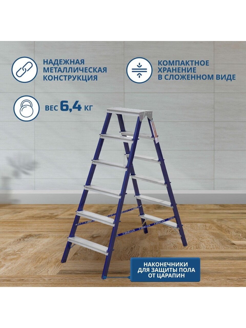 Вы можете приобрести «Стремянка 2 секции, 6 ступеней, сталь, 1.23 м, 150 кг, двусторонняя, Alumet, MD8206» и другие товары в нашем интернет-магазине в Брянске по низким ценам и с бесплатным самовывозом.