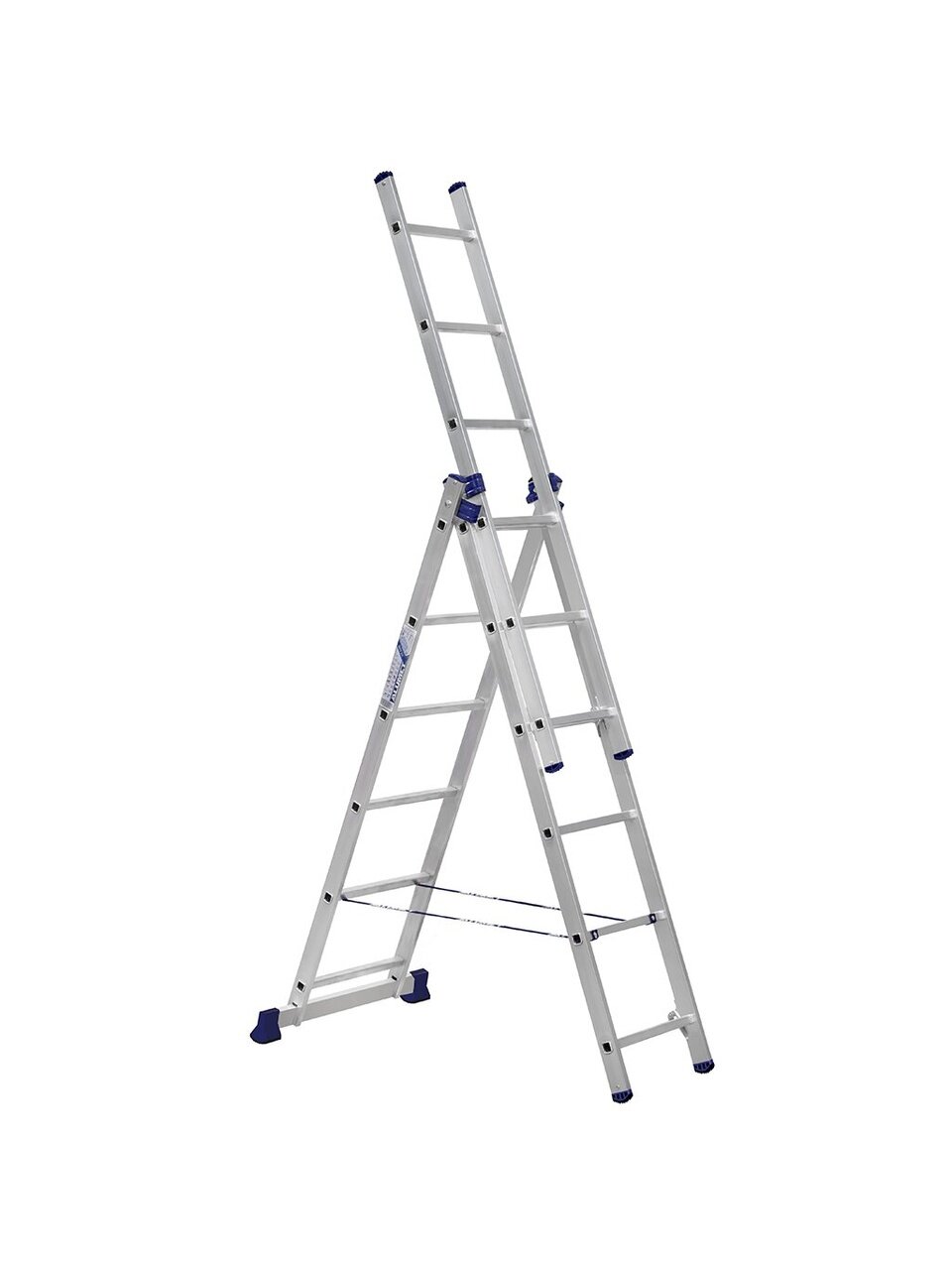 Лестница трехсекционная — это универсальная алюминиевая лестница, которая сочетает в себе сразу функции приставной лестницы, лестницы-стремянки и двухсекционной лестницы. Трехсекционная алюминиевая лестница собрала в себе все преимущества односекционной и двухсекционной лестницы. Данная лестница универсальна, состоит из трех частей и может использоваться в широком диапазоне высот. Имеется возможность использовать верхнюю секцию как отдельную небольшую приставную лестницу.