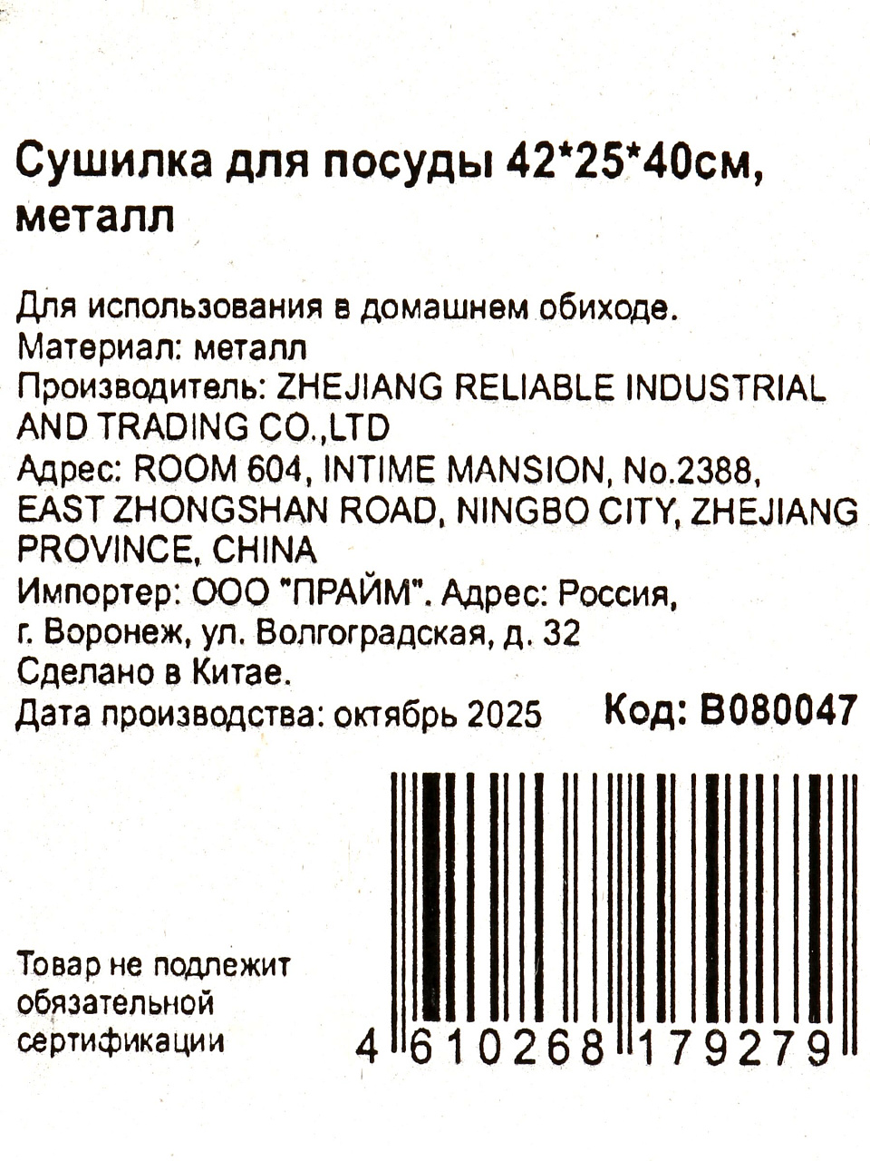 Сушилка для посуды металл, 2 яруса, с поддоном, 42х25х40 см, черная, B080047