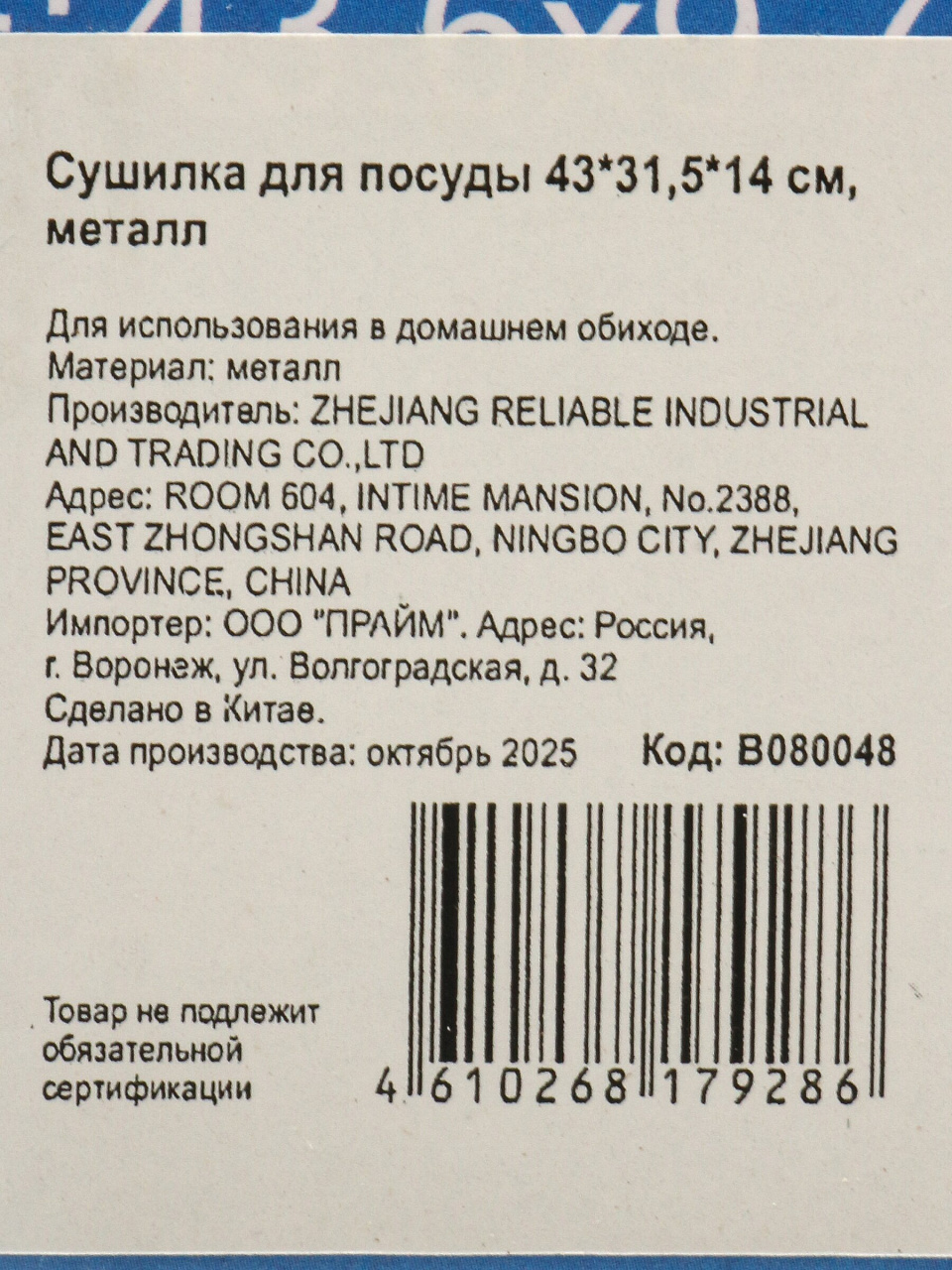 Выбирайте сушилку для посуды B080048, чтобы быстро организовать пространство и забыть о беспорядке на кухне. Закажите сейчас — получите выгодную цену и гарантию на прочность каждого изделия.