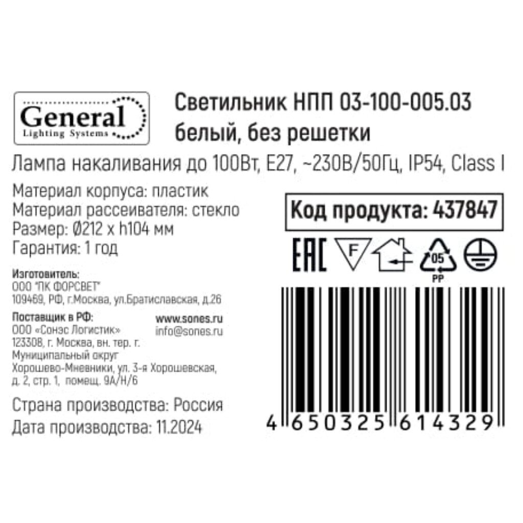 Светильник General НПП 03-100-005.03 — влагозащищённое решение для дома и производства: надёжность, безопасность, простота монтажа