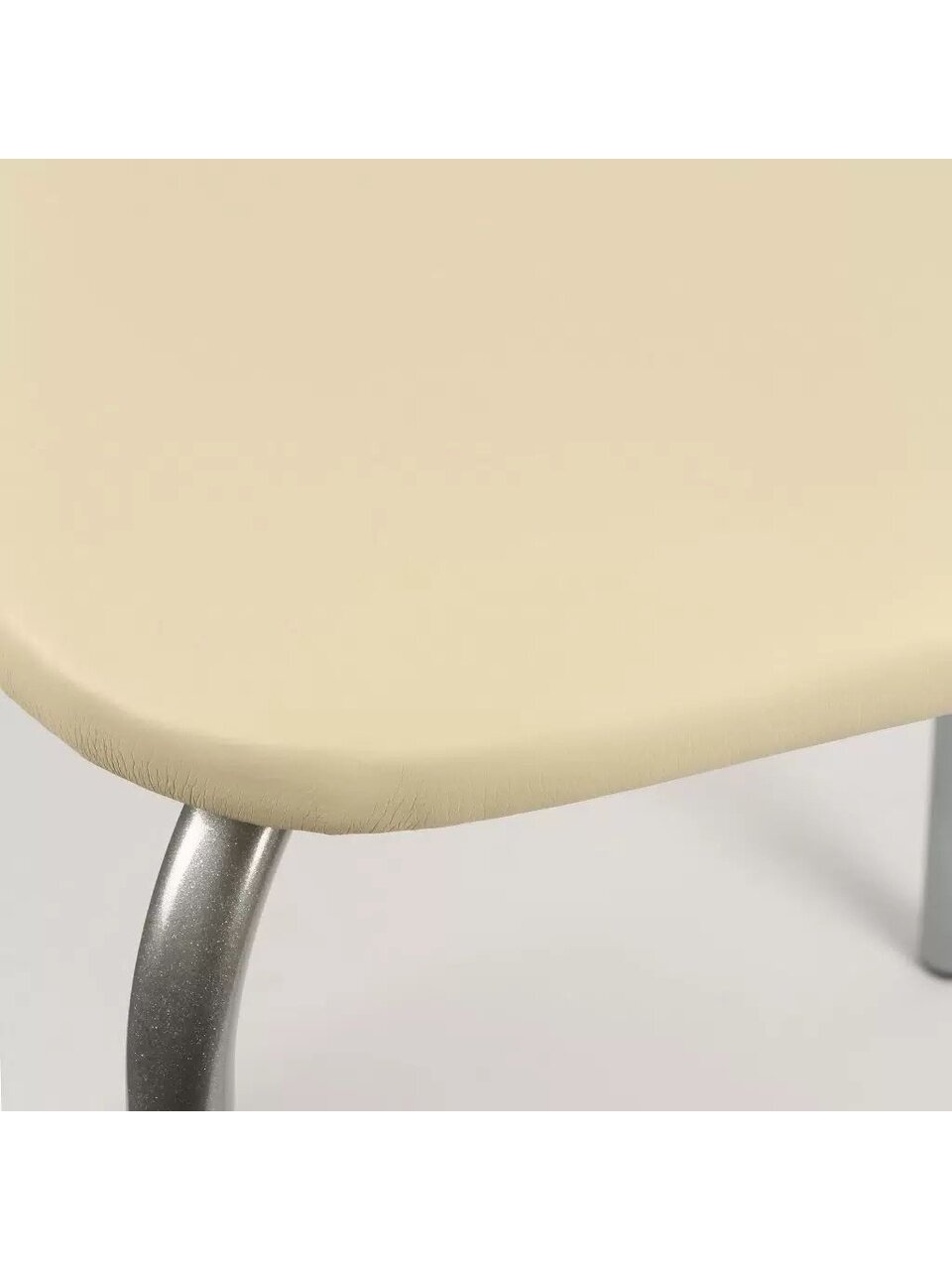Этот табурет не только украсит ваш дом, но и станет незаменимым помощником в повседневной жизни. Он идеально подходит для кухни, гостиной или любой другой комнаты, где требуется дополнительное место для сидения. Благодаря своей компактности и легкости, его можно легко перемещать и использовать там, где это необходимо. Кремовый цвет сиденья добавляет теплоты и уюта, а серебряные опоры придают изделию современный вид.