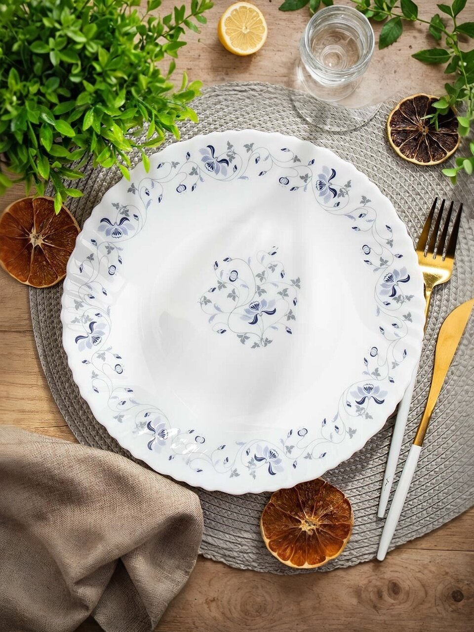 Тарелка круглая, диаметр 24 см — оптимально для подачи супов, вторых блюд, салатов. Универсальный формат для повседневного и праздничного стола.