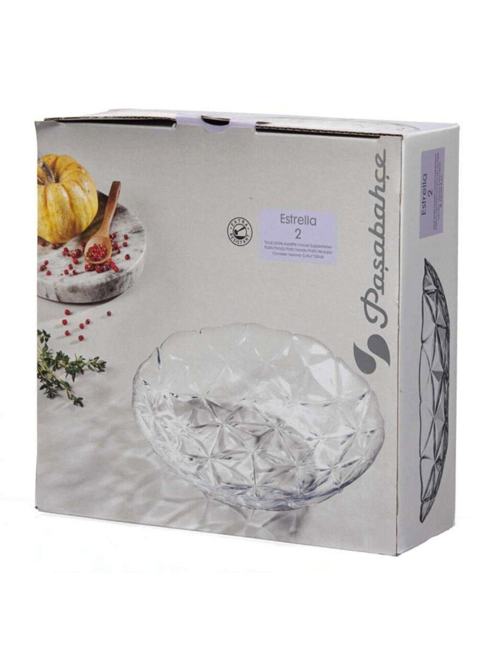 Сервировочные тарелки Pasabahce Эстрелла, 2 шт по 22 см: глубокие, прочные, стекло с узором — для стильной подачи и удобства каждый день.