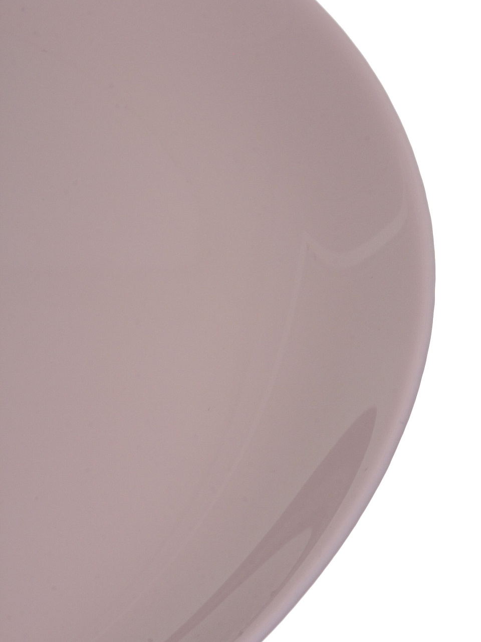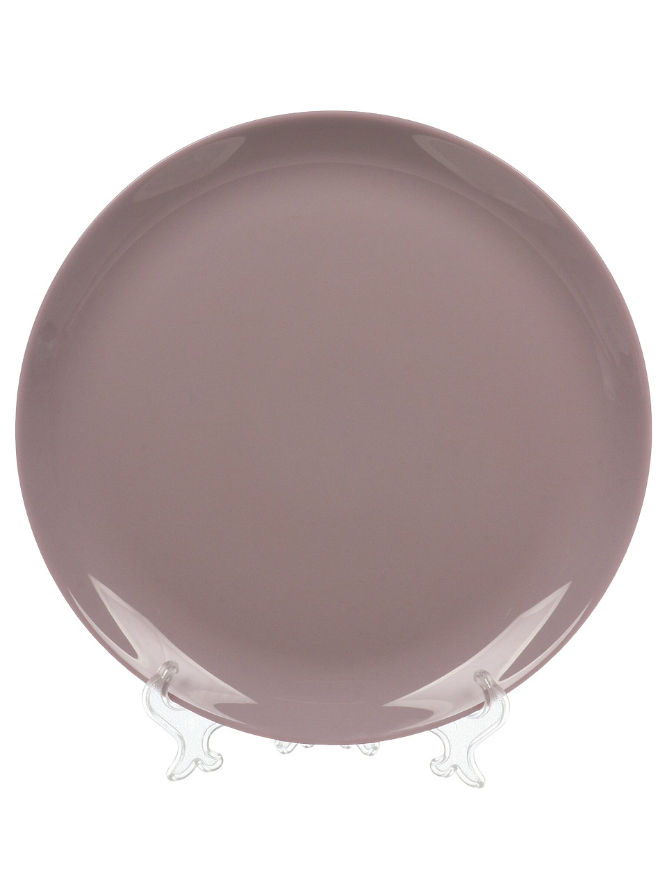 Тарелка круглая, диаметр — 25 см, что позволяет использовать её как обеденную, закусочную или подстановочную.