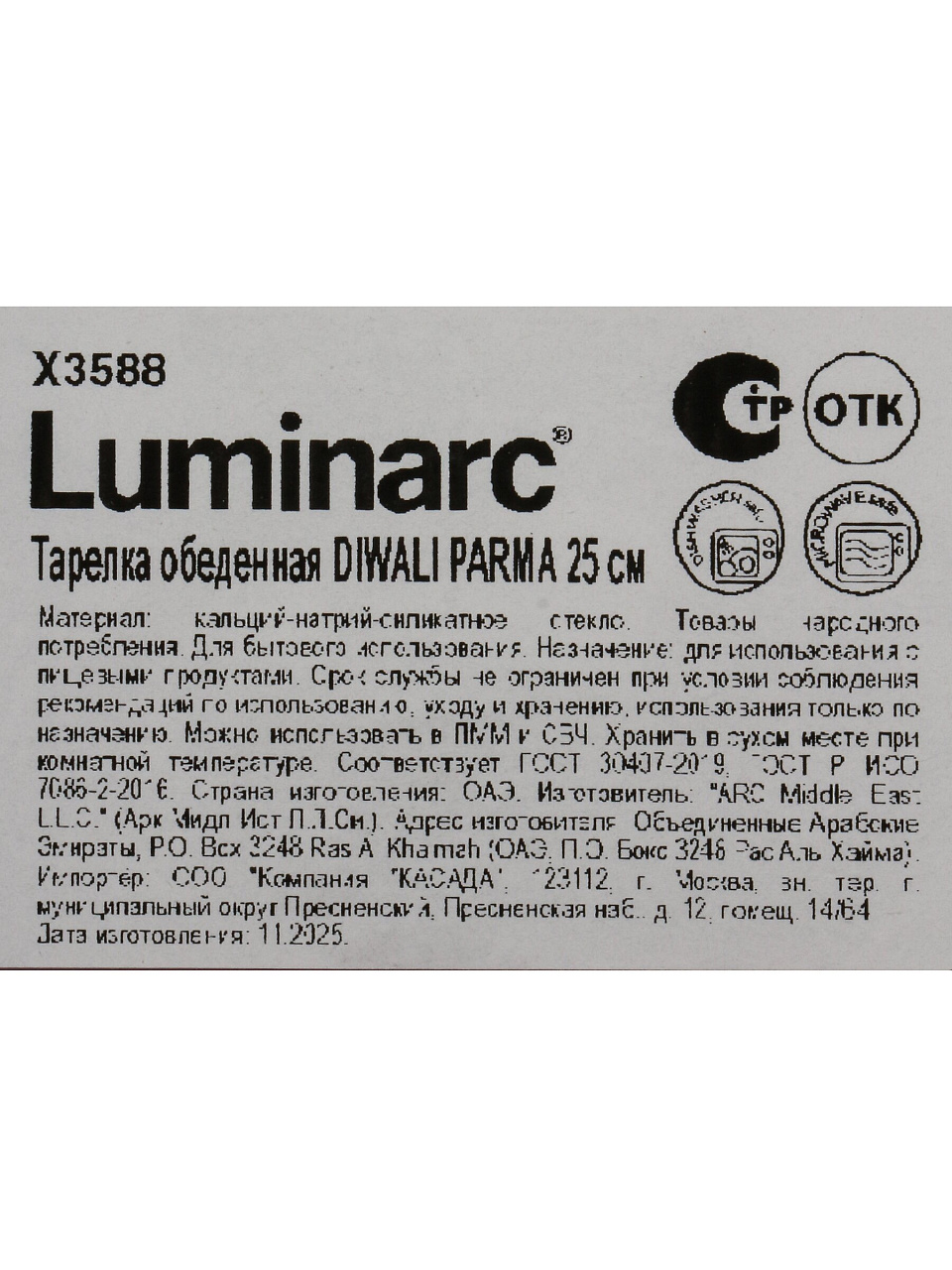 Тарелка обеденная Luminarc Diwali Parma 25 см — стильное решение для сервировки стола: долговечное стекло, универсальный размер, выгодная цена для дома и дачи.