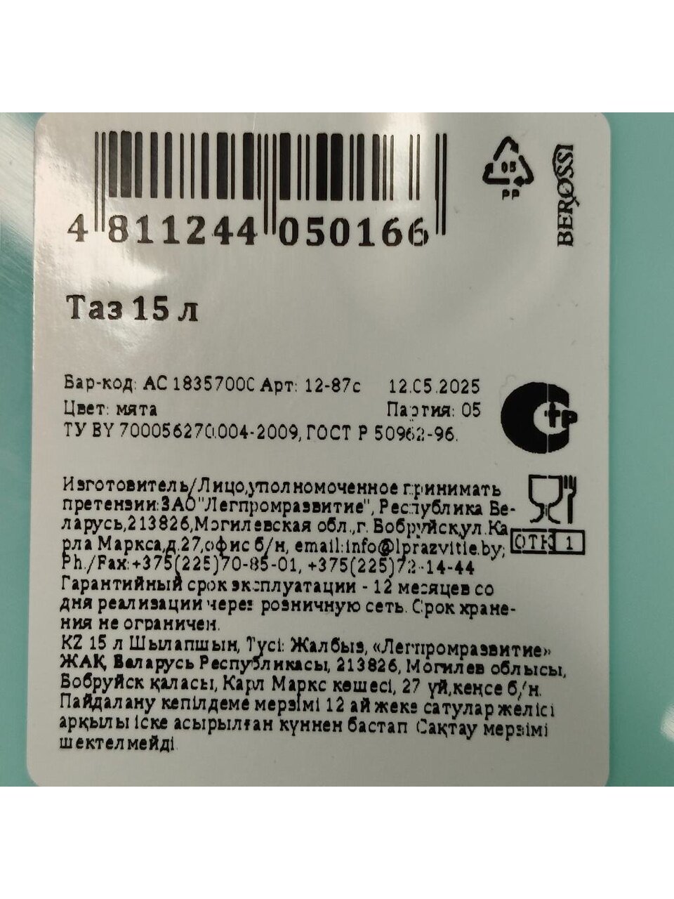 Вы можете приобрести «Таз пластик, 15 л, прямоугольный, с ручкой, мятный, Berossi, АС 18357000» и другие товары в нашем интернет-магазине в Железногорске по низким ценам и с бесплатным самовывозом.