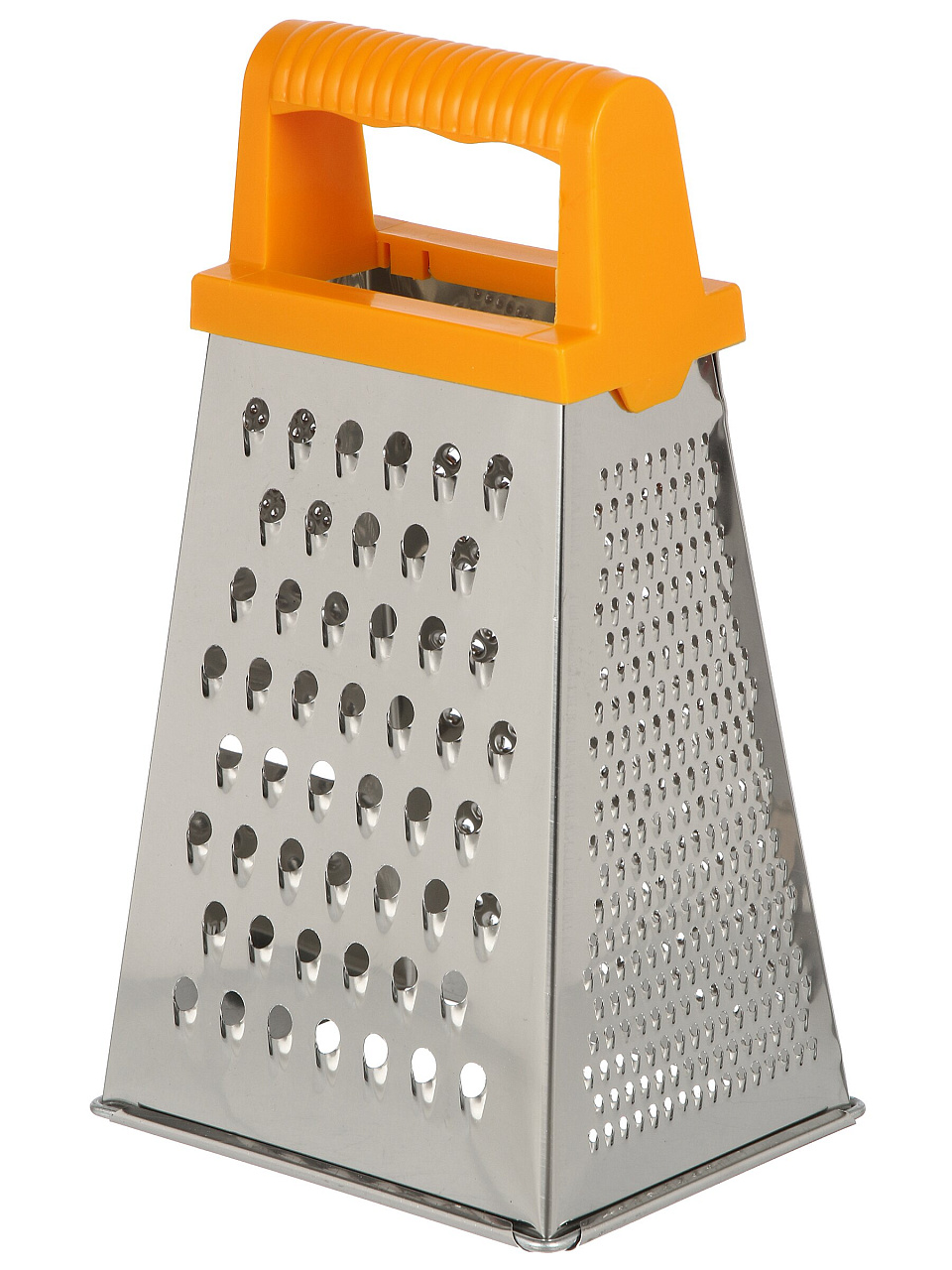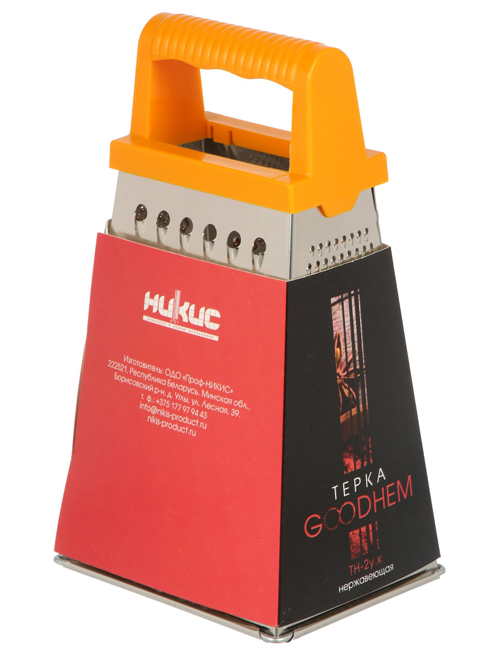 Терка 4 грани, 12х9.6х20.8 см, сталь, рукоятка полипропилен, с контейнером, навеска, Никис, ТН-2ук, 116678, хром