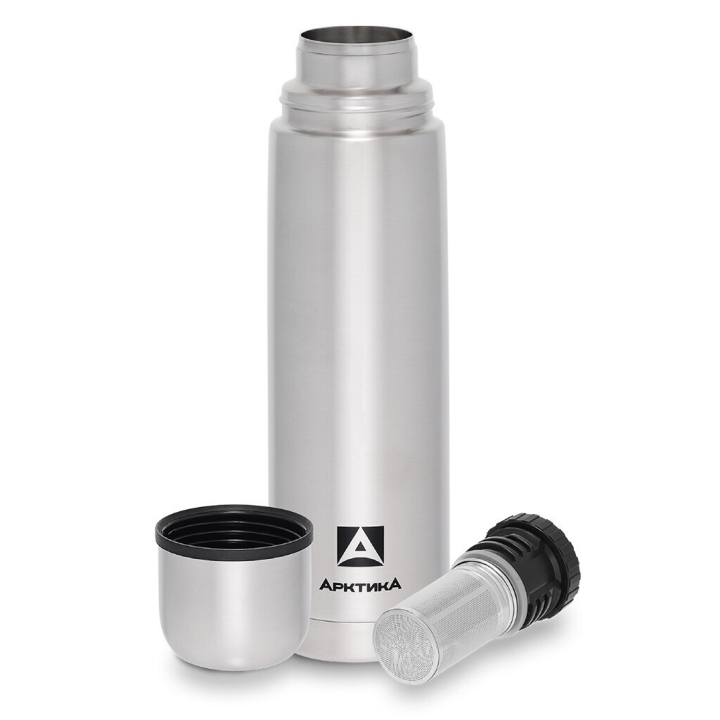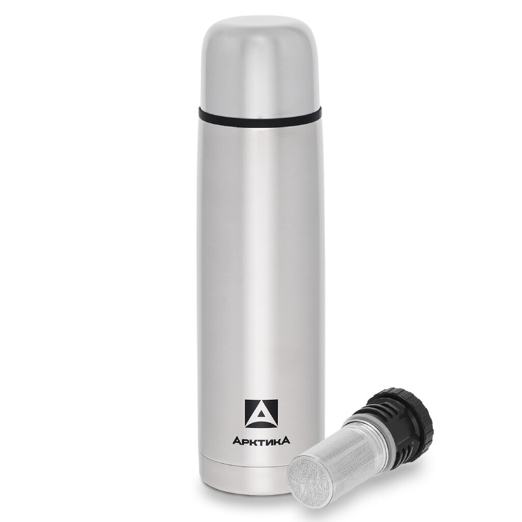 Термос Арктика 1 л из нержавеющей стали с ситечком — держит тепло до 26 часов, идеален для города, путешествий и дачи. Купите выгодно!