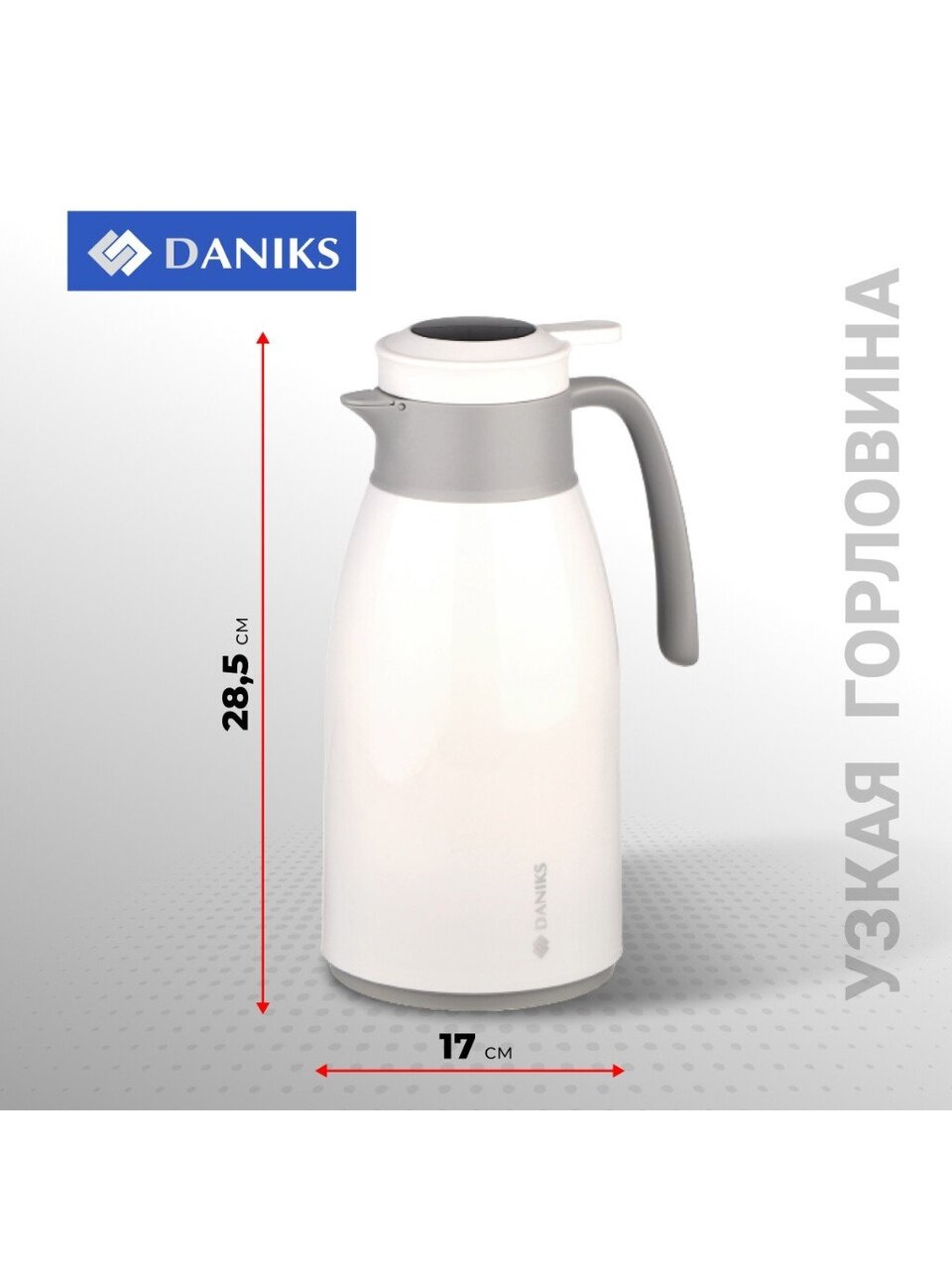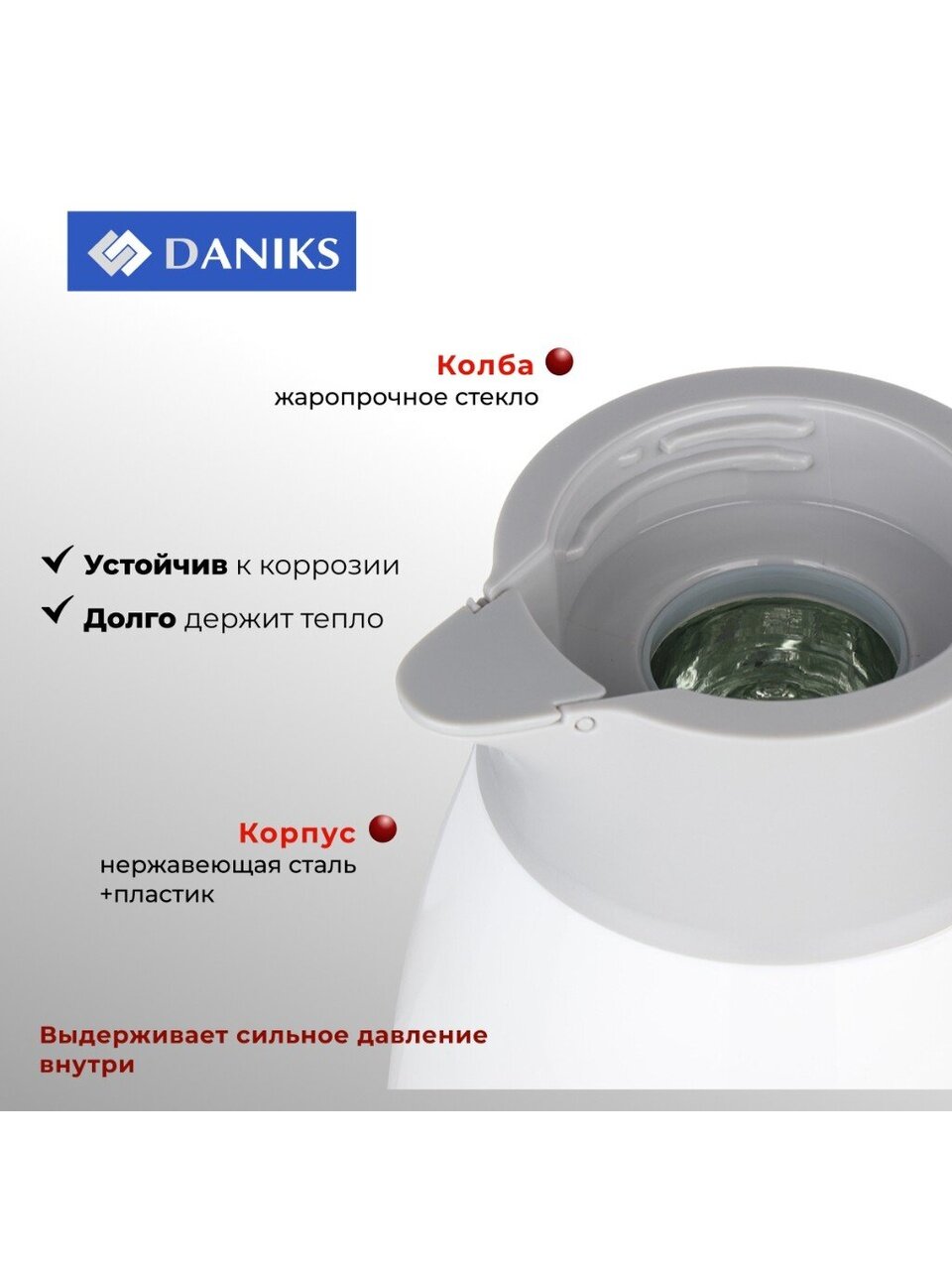 Термос-кувшин Daniks сохраняет тепло и холод до 24 часов благодаря стеклянной колбе и узкому горлышку.