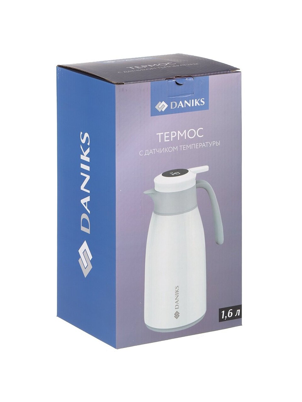 Термос-кувшин Daniks 1.6 л с датчиком: сохраняет тепло и холод до 24 часов, стеклянная колба, идеален для дома и пикника