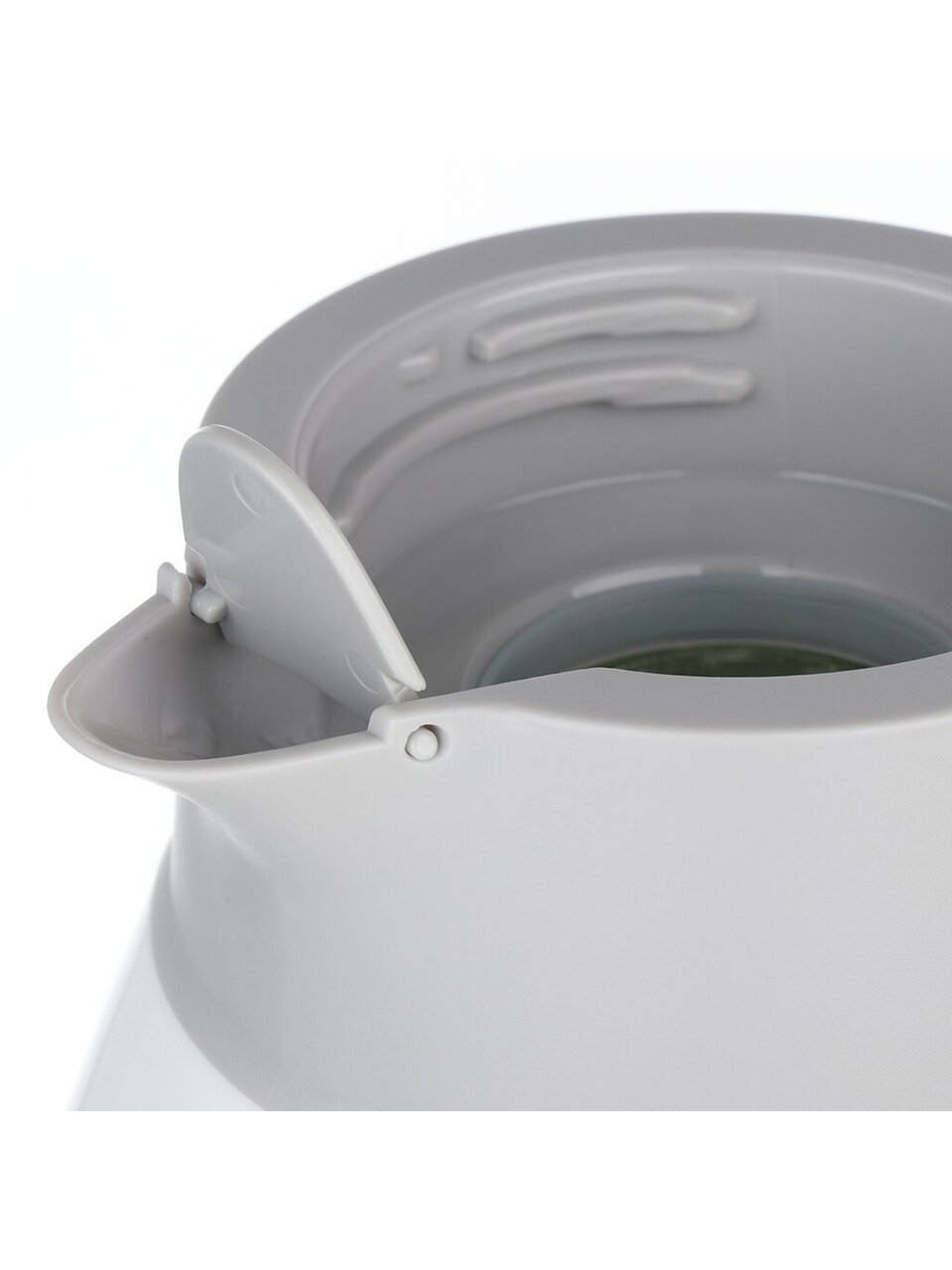 Объём термоса составляет 1.6 литра, корпус выполнен из пластика, а колба — из стекла. Это гарантирует сохранение вкуса и безопасность использования.