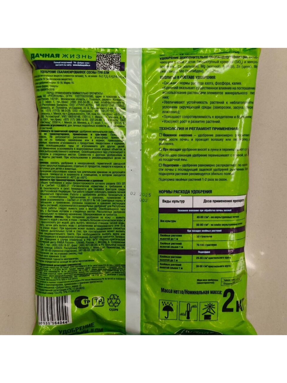 Идеальное решение для заботы о хвойных растениях! Удобрение "Сосны-туи-ели" от бренда "Добрая сила" гарантирует здоровый рост и защиту от болезней ваших хвойных культур. Минеральные гранулы обеспечивают растения всеми необходимыми питательными веществами на протяжении всего сезона: весной, летом и осенью.