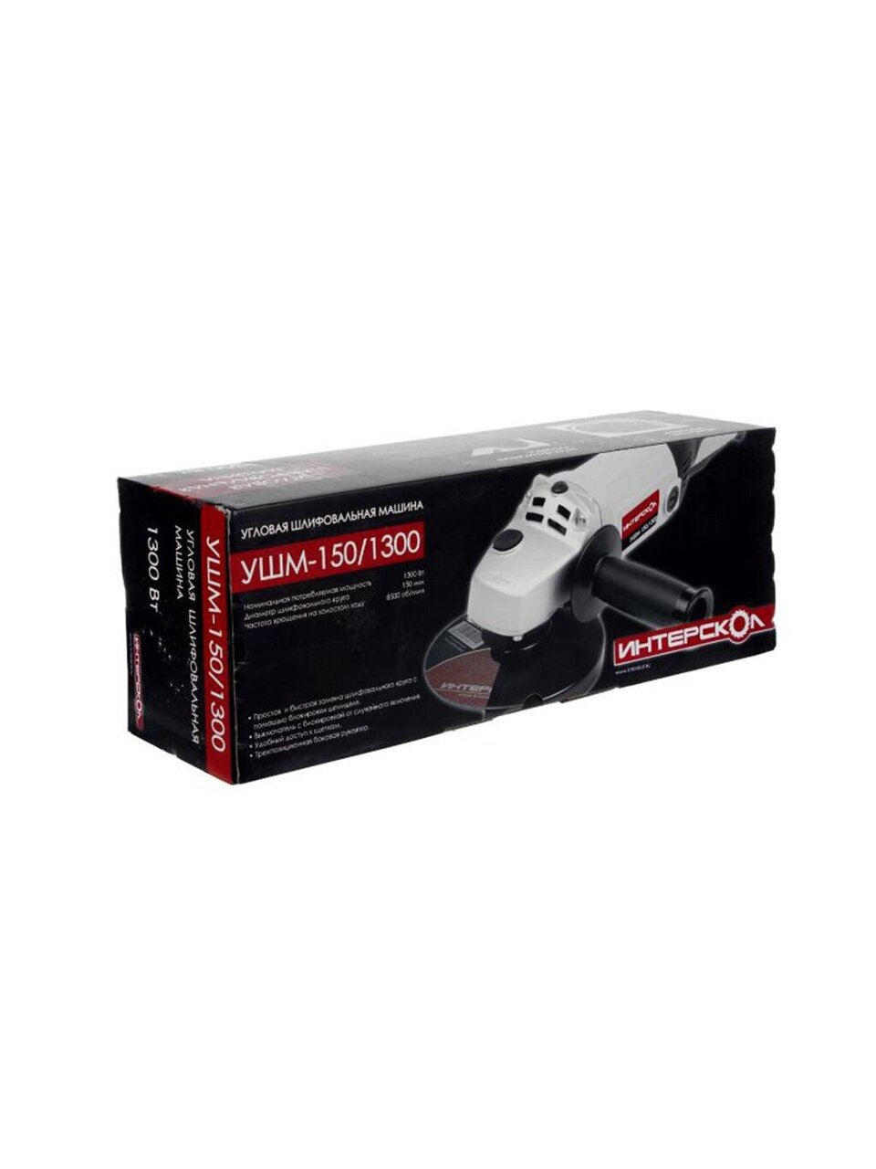Угловая шлифовальная машина Интерскол УШМ-150/1300 состоит из привода, представляющего собой коллекторный электродвигатель, размещенный в пластмассовом корпусе, и углового редуктора в корпусе из магниевого сплава. Рабочий инструмент крепится на резьбовом конце шпинделя. Машина может работать шлифовальным, полировальным или отрезным кругом, а также зачистным инструментом: металлическими или капроновыми чашечными и дисковыми щетками, лепестковыми шлифовальными головками и т.п.