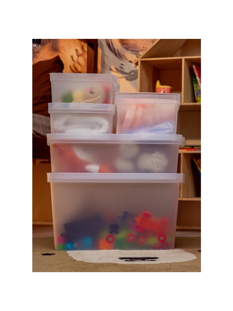 - Полупрозрачный корпус позволяет видеть содержимое и быстро ориентироваться в ящиках на полках.