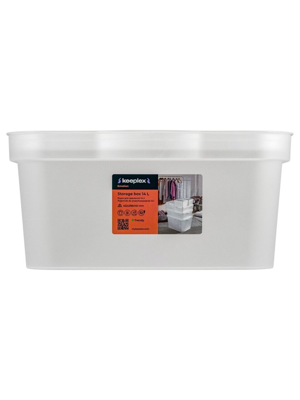 Вы можете приобрести «Ящик для хранения, 14 л, 45.2х29.8х14 см, с крышкой, матовый кристалл, Keeplex, Trendy, KL350411000» и другие товары в нашем интернет-магазине в Твери по низким ценам и с бесплатным самовывозом.