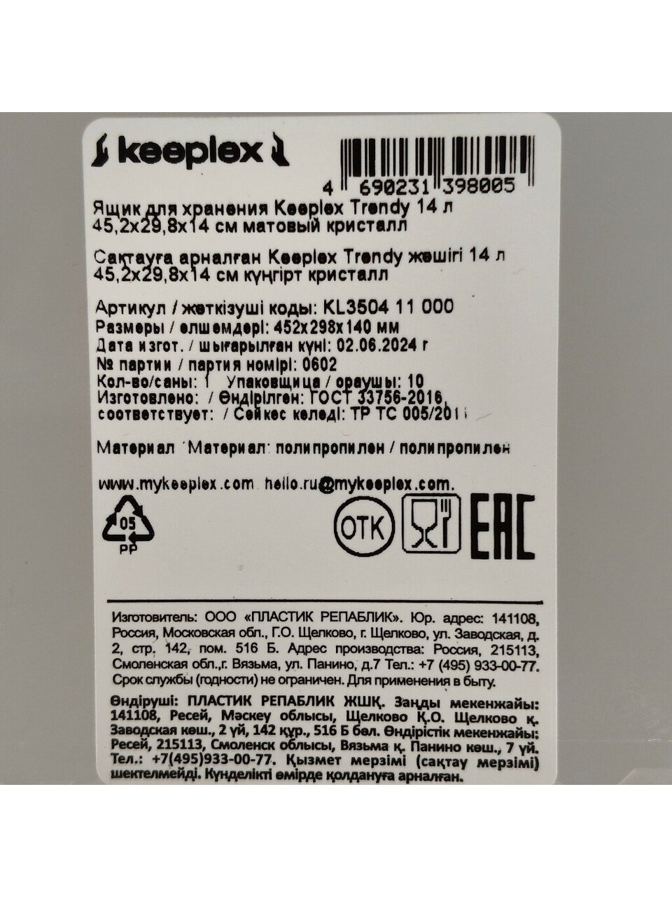 - Бренд: Keeplex.